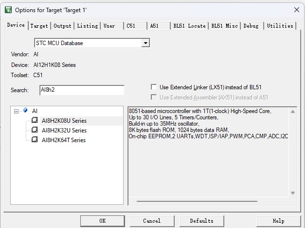 关于keil中没有8h2k12u/Ai8h2k12u的芯片 |