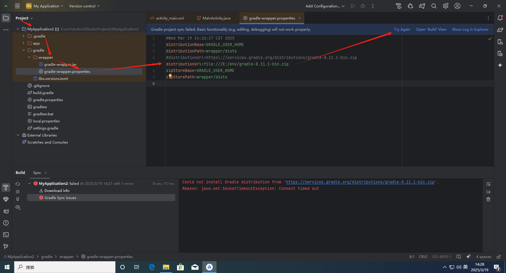 点击try again,等待gradle下载依赖文件(时间较长,耐心等待)