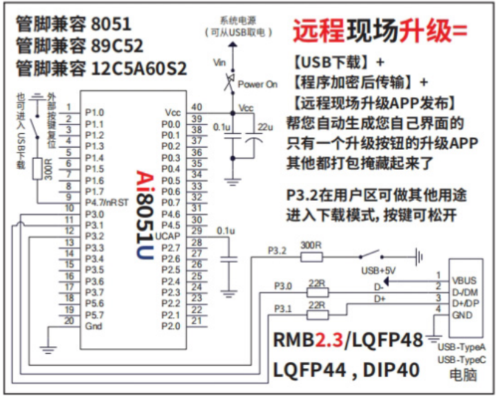 8,Ai8051U是 自带硬件USB, 1个芯片就能直接USB连接电脑仿真/下载,全球唯一