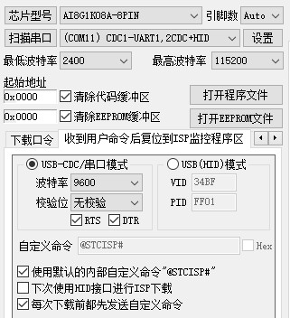 注意下载端口一定要选CDC,不要选HID,否则不能正确发送下载命令