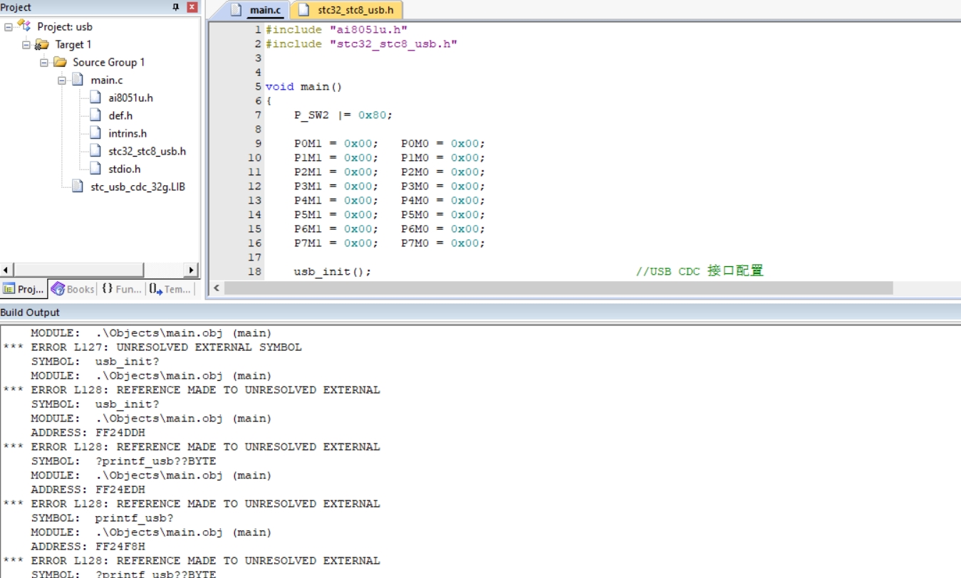 2. 库文件未正确链接:如果printfusb函数定义在某个库文件中,可能该库文件未正确链接到项目中。