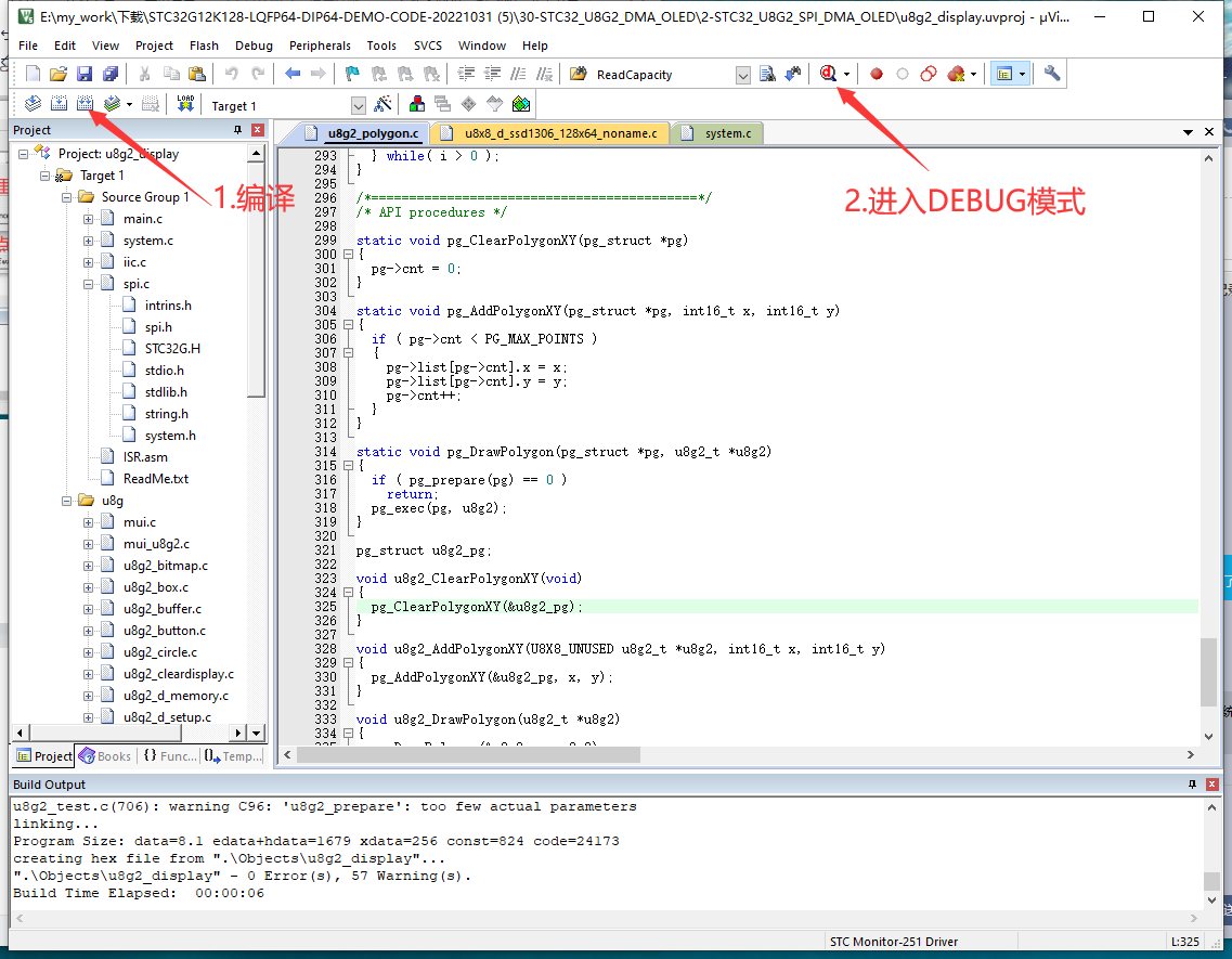 9.出现下面这个界面,说明已经成功的进入了仿真模式,然后就可以用变量监测,断点等等的功能