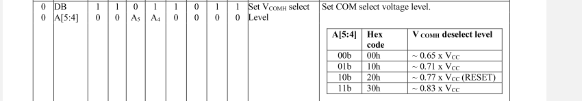 - oledWriteCmd(0xDB); // 设置VCOM电压