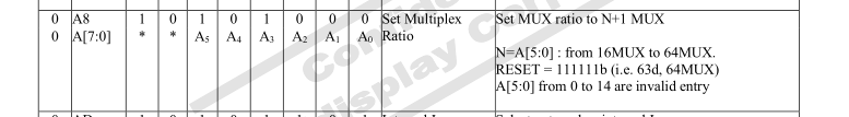- oledWriteCmd(0xA8); // 设置复用率 双字