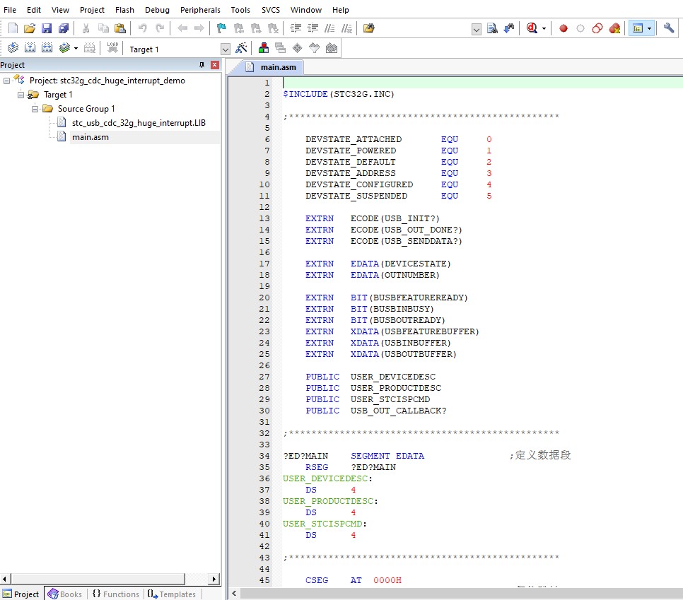 //STC8H8K64U汇编程序调用USB-CDC库产生USB-CDC虚拟串口通信程序, 主程序