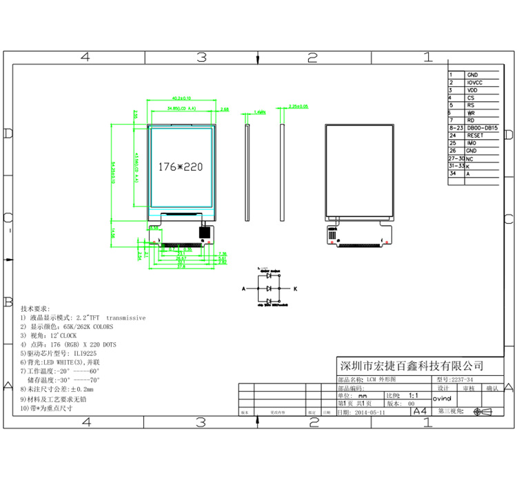 屏幕主控是ILI9225,分辨率:176*220,16bit并口,262k彩屏