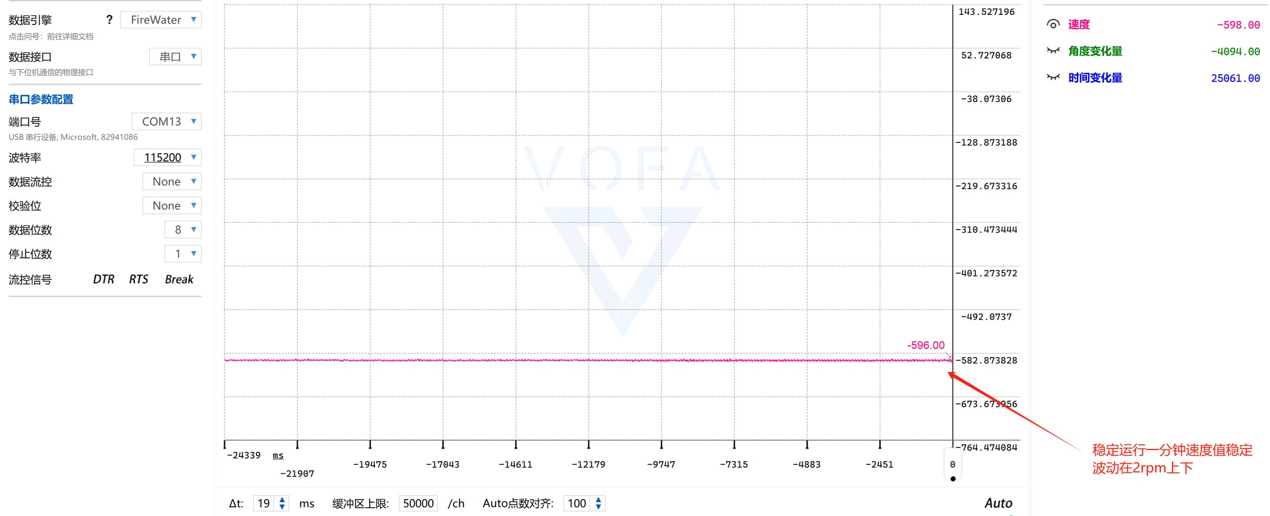 但是实际工作中发现还是优先保证ds的数值比较合适,因为保证dt的话,采样率较高可能会造成较大的数据波动,体现起来就是数据毛刺。 举个例子就是ds=5,dt=50us,此时计算v=0.1*3662(编码器系数)=366.2rpm 那么ds稍微变化一些,ds=4,dt=50us,v=292.96rpm,可以看到跨度非常大,变化高达73,这显然是令人不能接受的。