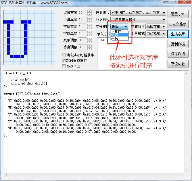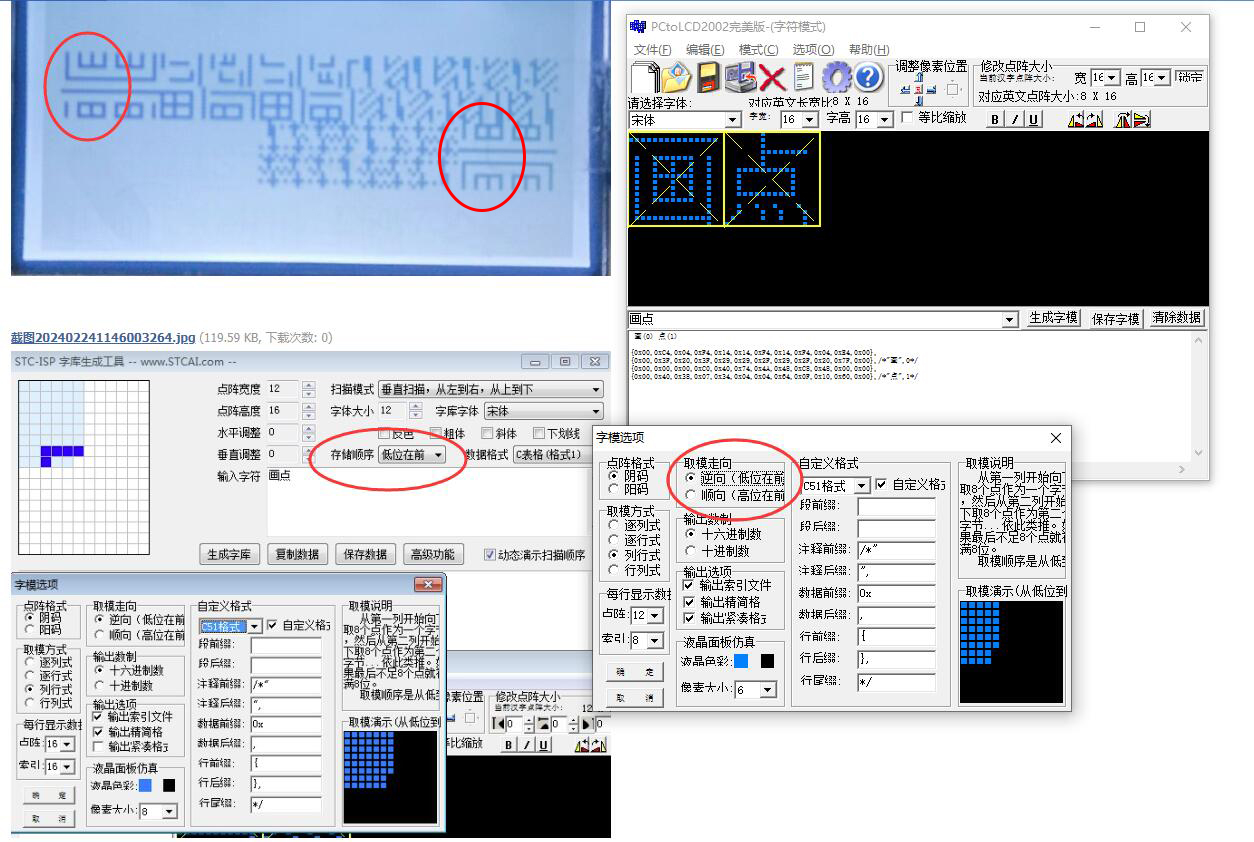 原来用的是PCtoLCD生成的,使用STC的字库生成工具,没有成功,