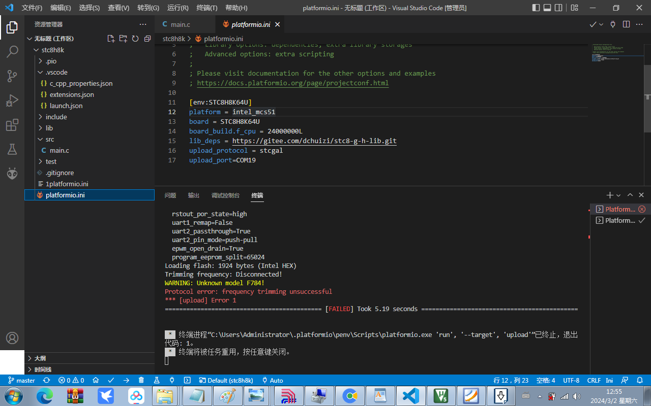zxf1*** 发表于 2024-3-7 22:23 确实可以,不过 我感觉8的库没有32的好,platformio还不支持STC32