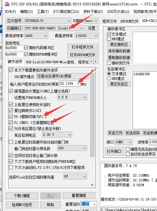四、下载测试 1.首先ISP软件的下载参数进行如下的配置!
